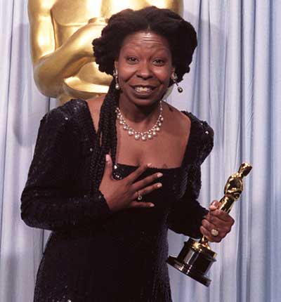 其實(shí)在此次獲獎(jiǎng)之前,烏比·戈德堡已經(jīng)成功確立了自己一線女演員的地位,而這一切完全要?dú)w功于她于1985年在影片《紫色》中所塑造的那個(gè)令人難忘的角色。但在《人鬼情未了》之后,她很快便發(fā)現(xiàn)自己已經(jīng)被定位成了一個(gè)專(zhuān)演怪誕喜劇角色的女演員,所拍影片也盡是些諸如《修女也瘋狂》和《美國(guó)制造》這樣沒(méi)幾天就被大家忘得一干二凈的應(yīng)景之作。