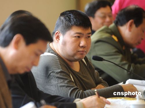 毛澤東之孫、全國(guó)政協(xié)十一屆一次會(huì)議新委員毛新宇(中),在北京參加新委員培訓(xùn)討論。毛新宇是軍事科學(xué)院戰(zhàn)爭(zhēng)理論和戰(zhàn)略研究部正師職研究員。