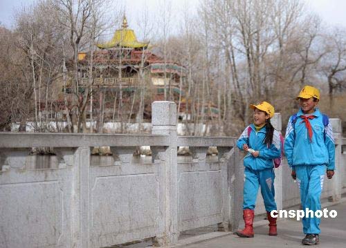 3月20日,兩名拉薩小學(xué)生走在放學(xué)回家的路上。