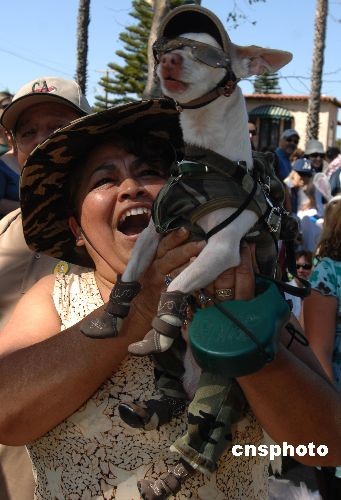 圖為一只洛杉磯長灘愛犬參加“選美”。中新社發(fā) 張煒 攝