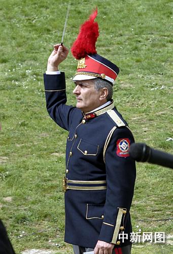希臘當(dāng)?shù)貢r(shí)間3月24日,北京二00八年奧運(yùn)會(huì)圣火采集儀式在古奧林匹亞競(jìng)技場(chǎng)舉行。圖為儀式現(xiàn)場(chǎng)的樂(lè)隊(duì)指揮。 中新社記者 王歡
