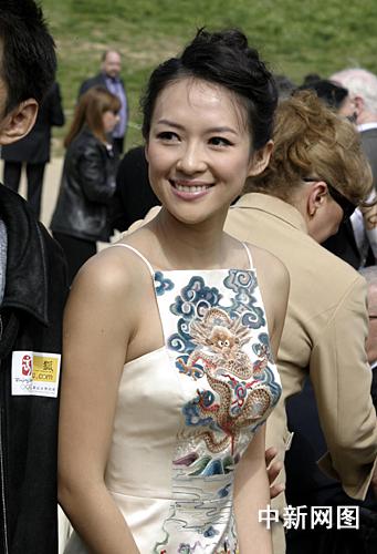 組圖:章子怡身著中國韻味的絲綢禮服亮相希臘(2)