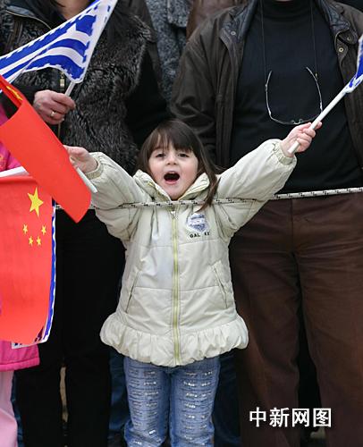 3月25日,北京2008年奧運(yùn)圣火希臘傳遞第二天,慶典儀式在終點(diǎn)約阿尼納舉行。小市民高舉中國(guó)和希臘國(guó)旗歡迎北京奧運(yùn)圣火到來。中新社記者 王歡
