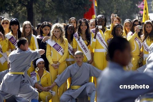國(guó)際旅游小姐在少林寺模仿中國(guó)武術(shù)(2)