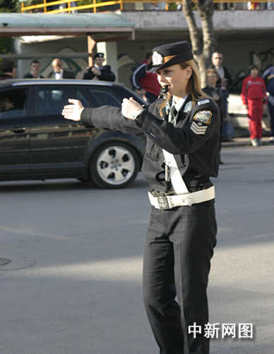 3月26日,北京奧運會圣火希臘境內(nèi)傳遞第三日,抵達最后一站韋里亞。距離慶典儀式還有一個小時,女交警在輸導交通。中新社記者 王歡