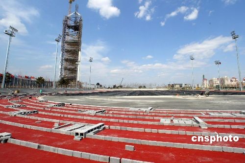 圖:奧運(yùn)“鳥巢”熱身場(chǎng)地塑膠跑道鋪設(shè)基本完成(2)
