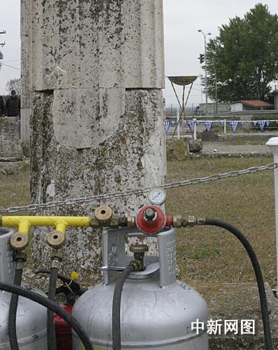 3月27日,北京奧運(yùn)圣火希臘境內(nèi)第四天傳遞,在派拉古城遺址舉行慶典儀式,F(xiàn)場(chǎng)架設(shè)的圣火盆由氣罐供應(yīng)燃燒氣體。中新社記者:王歡