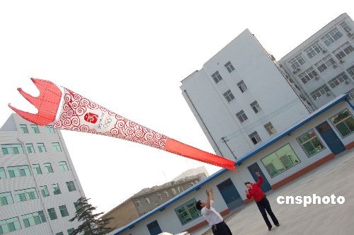 喜迎奧運(yùn)圣火 “祥云火炬”風(fēng)箏濰坊試飛(5)
