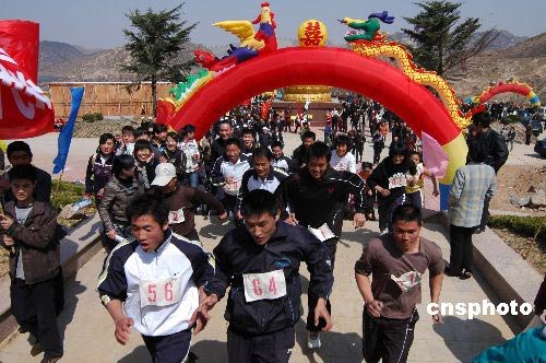 2008年4月2日,山東省日照市舉行全民健身與奧運同行萬人登山活動暨馬鬐山風(fēng)景區(qū)啟用慶典,上萬名群眾利用登山健身的方式,迎接2008年奧運會。作者: 陳為峰