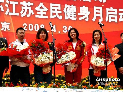 圖:江蘇奧運冠軍與群眾互動迎奧運