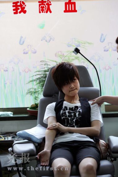 何潔、黃雅莉是約好一起開(kāi)車到血液中心的,并在車上填完獻(xiàn)血申請(qǐng)表?吹窖褐行木谷挥羞@么多人在獻(xiàn)血,她們也很激動(dòng),“不知道這么多人都會(huì)來(lái)啊,都是為災(zāi)區(qū),感覺(jué)很感動(dòng)。”何潔說(shuō):“我以前在四川上學(xué),已經(jīng)問(wèn)候了那邊的朋友,他們都很平安。今天是我第一次獻(xiàn)血,感覺(jué)還好吧!蓖瑏(lái)的黃雅莉雖然緊張,但還是很期待:“哎,不就是抽點(diǎn)血嘛,抽完了就好啦!痹诼(tīng)說(shuō)好朋友李宇春也來(lái)獻(xiàn)血時(shí),她們很關(guān)心:“春春暈血,她現(xiàn)在沒(méi)事吧!辈贿^(guò)在進(jìn)入驗(yàn)血室時(shí),剛剛還一副豁出去樣子的黃雅莉卻像孩子一樣跟公司的工作人員說(shuō):“其實(shí)我還是有點(diǎn)緊張哈!”但是她在何潔抽血時(shí),卻不停地給同伴鼓勵(lì):“何潔,別緊張,我支持你哦!”