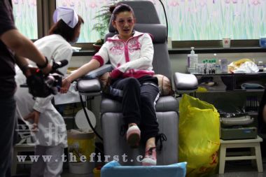等候獻(xiàn)血的時(shí)候,黃奕說:“希望災(zāi)區(qū)的人民能順利渡過難關(guān),政府也在極力給予幫助,所以一定要堅(jiān)持下去!秉S奕笑著表達(dá)了自己的心愿:“一切都會好起來的,奧運(yùn)會也一定能順利舉辦!背檠(yàn)的時(shí)候,黃奕一臉輕松,“沒事,就像被蚊子咬了一下!闭麄(gè)獻(xiàn)血的過程,看不出黃奕有絲毫的緊張,甚至和周圍獻(xiàn)血的人們聊了起來。此外,她還“勒令”身邊的同事:“你也去獻(xiàn),快點(diǎn)快點(diǎn)!鲍I(xiàn)血完畢,黃奕輕松地走出來,身后還有被她要求獻(xiàn)血的同事,說:“我也獻(xiàn)完了。”