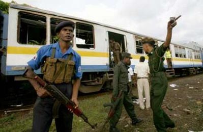 斯里蘭卡軍方人員在出事現(xiàn)場警戒。