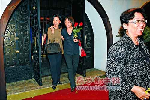 聚餐結(jié)束,偉仔嘉玲與偉仔母親(右)依依話別。
