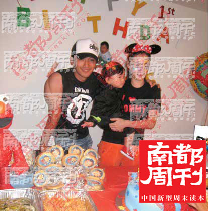 8月2日,Lucas滿一周歲生日,謝家?guī)缀鮾A巢而出,除了已經(jīng)提前設宴為孫子慶生的奶奶狄波拉缺席,謝賢和謝霆鋒均停工趕到現(xiàn)場為其慶生,鮮少露面的張柏芝抱著與自己“黑白配”的愛子,一臉幸福。一周歲的Lucas穿起白色西裝、白色小皮鞋,儼然一副小大人模樣,甚是可愛。謝賢自豪地告訴記者,宴會的場面、布置都是他精心設計的,“這是我給他的心意,那天我孫子很開心,長大一歲了嘛!”