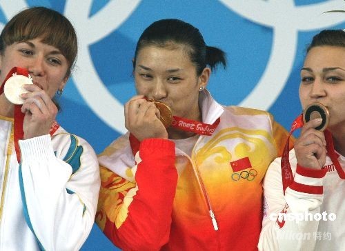 8月15日下午,中國女子舉重名將曹磊在北京奧運會女子舉重75公斤級決賽中以282公斤的總成績獲得冠軍,從而實現(xiàn)了中國女子舉重選手包攬本屆奧運會所有參賽項目4枚金牌的目標。25歲的曹磊出生在美麗的海濱城市秦皇島,曾經獲得2007年世錦賽冠軍,歷經多年的刻苦磨練終于圓了夢寐以求的“奧運會金牌”夢。中新社發(fā) 任晨鳴 攝