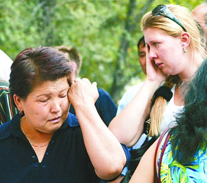 25日,遇難者家屬到比什凱克認(rèn)領(lǐng)親人遺體。