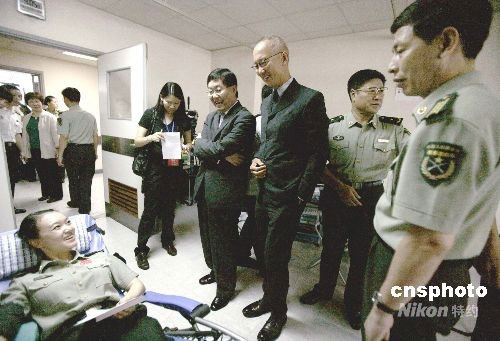 圖為駐港部隊(duì)張志國(guó)副政委、香港紅十字會(huì)獻(xiàn)血中心菜永忠副主席等在獻(xiàn)血現(xiàn)場(chǎng)與正在獻(xiàn)血的駐港女兵交流。