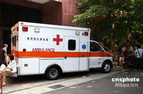 圖為19日早停放在臺北地方法院側(cè)門的臺大醫(yī)院救護(hù)車。中新社發(fā) 陳立宇 攝