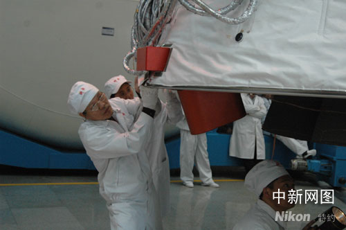 中國(guó)神舟七號(hào)載人航天飛船發(fā)射在即。圖為飛船推進(jìn)艙測(cè)試。