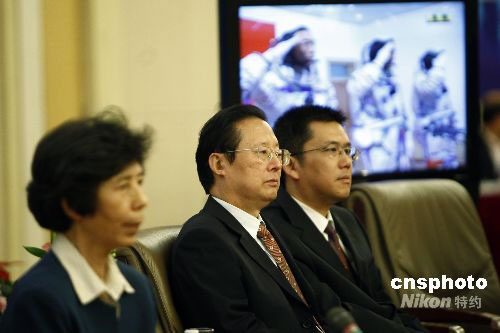 圖:中國(guó)航天專家觀看神舟七號(hào)飛船發(fā)射直播