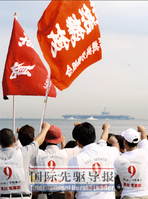 國際先驅(qū)導(dǎo)報(bào)記者劉贊 特約撰稿秦帆發(fā)自東京 結(jié)束采訪走出美軍基地時(shí),基地大門前多了一隊(duì)全副武裝的防暴警察,一副嚴(yán)陣以待的架勢(shì)。兩名站崗的警察告訴《國際先驅(qū)導(dǎo)報(bào)》記者,平時(shí)基地門口就只有他們值班,但當(dāng)天為防止市民們抗議示威而增加了警力。此時(shí)在能看到航母經(jīng)過的岸邊,已聚集了數(shù)百名反對(duì)“華盛頓”號(hào)進(jìn)駐的居民揮舞拳頭高喊:“‘華盛頓’號(hào)滾回家去!”