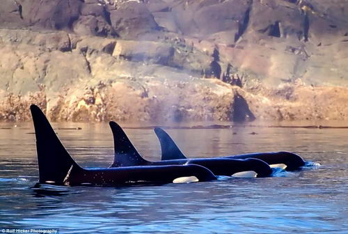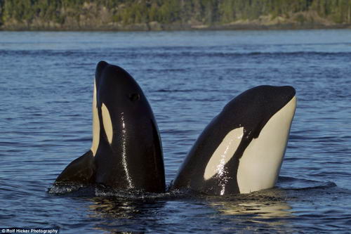 殺人鯨母子將頭伸出水面觀看動(dòng)靜。