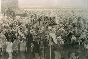 在游行隊(duì)伍中,北京大學(xué)學(xué)生舉起寫著“小平您好”的橫幅走過檢閱臺前,引起陣陣歡呼聲。簡短的四個(gè)字,濃縮了深厚的感情。