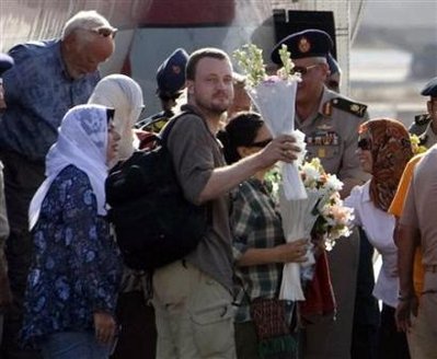 一名獲救的外國游客在抵達埃及后受到熱烈歡迎。