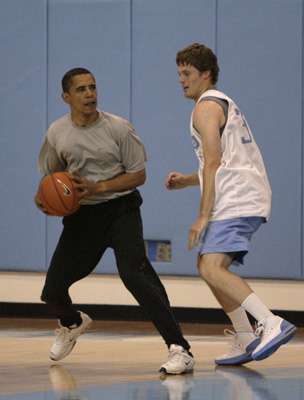 奧巴馬自己又如何呢?在夏威夷檀香山念書時,他已經(jīng)熱愛打籃球,擅長跳射投籃,盤扭技術(shù)也很到家,到現(xiàn)在還經(jīng)常落場演練。