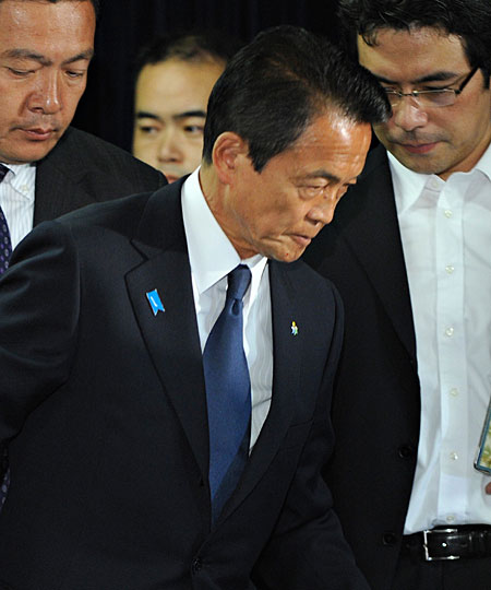 中新網(wǎng)8月30日電 綜合日本共同社消息,日本首相、自民黨總裁麻生太郎30日晚在接受電視采訪時就眾院選舉結(jié)果表示“未能消除(選民)對自民黨的不滿”,事實上承認(rèn)了敗北。他并表示將辭去自民黨總裁職務(wù)。