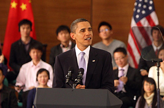 中新社紐約十一月十六日電 美國總統(tǒng)奧巴馬十六日與上海的青年大學(xué)生進(jìn)行了一場約一個小時的對話,美國的多家華文報紙對此都進(jìn)行了大篇幅的重點報道。