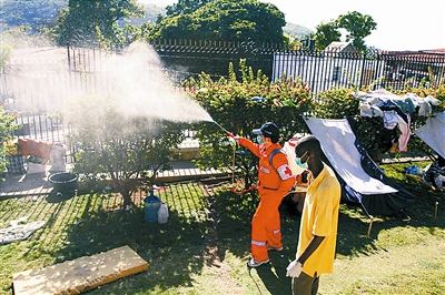 中國(guó)國(guó)際救援隊(duì)醫(yī)療分隊(duì)同時(shí)還在災(zāi)區(qū)開展了衛(wèi)生宣教、衛(wèi)生防疫工作。據(jù)侯世科介紹,海地總理府附近聚集了近千名災(zāi)民,震后衛(wèi)生條件極差,許多尸體沒有及時(shí)掩埋,災(zāi)民缺少食物、藥品,隨時(shí)可能出現(xiàn)腸道傳染病等疾病的蔓延。中國(guó)醫(yī)護(hù)人員對(duì)300多平方米的災(zāi)民聚集點(diǎn)進(jìn)行了噴灑消毒。“我們攜帶的消毒藥用得很快,明天我們會(huì)帶更多的藥物去現(xiàn)場(chǎng)!