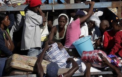 中新網(wǎng)1月19日電 據(jù)外電19日?qǐng)?bào)道,數(shù)以千記的海地災(zāi)民爭(zhēng)相擠上開(kāi)往太子港郊區(qū)的公共汽車,希望在那里能夠更容易的找到食物和水。
