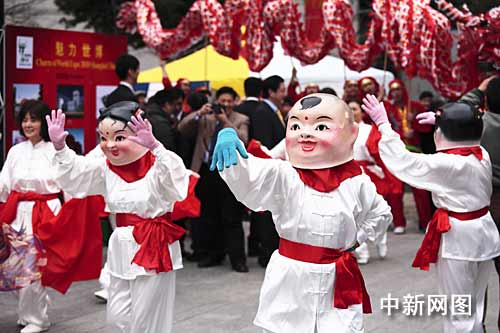 春節(jié)祭開場,各式中國傳統(tǒng)民俗表演讓日本當(dāng)?shù)厝烁惺艿搅酥袊鴿鉂獾哪晡。舞龍、旱船、大頭娃娃、太極拳,場面分外熱鬧。