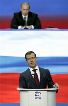 梅德韋杰夫在推舉他成為總統(tǒng)候選人會議代表投票后的統(tǒng)一俄羅斯黨會議上發(fā)言時說:“現(xiàn)在俄羅斯存在的這種機會是百年一遇才降臨到我們這個強大復雜的國家的。”