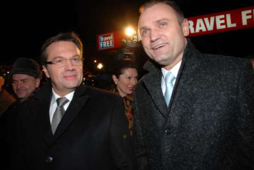 中新網(wǎng)捷克米古洛夫村12月20日電 12月20日晚10時(shí)離捷奧邊境撤銷(xiāo)檢查前2小時(shí),奧地利內(nèi)務(wù)部長(zhǎng)普拉特爾和奧地利駐捷克大使來(lái)到捷奧邊境捷方邊境小村米古洛夫和當(dāng)?shù)孛癖娨黄饝c祝這個(gè)具有偉大歷史意義的日子。