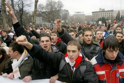 塞爾維亞首都貝爾格萊德各大院校的近萬(wàn)名大學(xué)生18日中午聚集在市中心的共和國(guó)廣場(chǎng),舉行大規(guī)模游行集會(huì),抗議科索沃單方面宣布獨(dú)立。