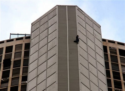 45歲的羅伯特在其個人網(wǎng)頁上宣稱自己12年的攀爬生涯中,已經(jīng)攀爬過世界各地近70座高樓或紀(jì)念性建筑,包括美國紐約帝國大廈和法國巴黎埃菲爾鐵塔。他的危險舉動讓他50多次被抓進(jìn)警察局。