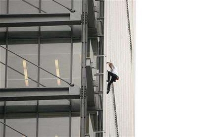 法"蜘蛛俠"徒手爬上紐約時(shí)報(bào)大樓 呼吁環(huán)保(圖)
