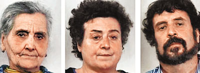 3名禁錮47歲精神病女子的疑犯,(左起)母親戈利諾、親姐米凱利納及弟弟普里斯科。