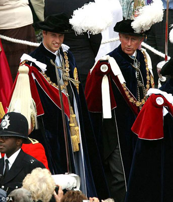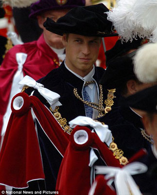 身穿騎士套裝的威廉王子看起來非常引人注目,當(dāng)他與父親、祖父以及其他騎士組成隊列走過時,他的眼睛始終緊盯地面,神色顯得稍微有些局促不安。