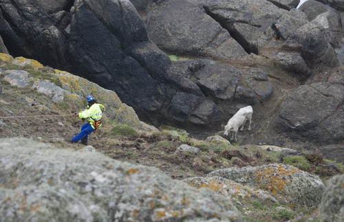由于擔心那頭牛的身體狀況,皇家防止虐待動物協(xié)會7月1日主動表示愿意提供營救費用。營救行動于3日展開,27名海岸警衛(wèi)隊、皇家防止虐待動物協(xié)會、消防隊員、皇家海軍航空兵人員在山澗上的懸崖上集合以協(xié)調營救行動,等待“海王”直升機和五名機組人員的到來,好奇的當地人和旁觀者也在一旁觀看,整個營救行動在六分鐘內完成。