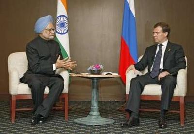 中新網(wǎng)7月9日電 7月9日,俄羅斯總統(tǒng)德梅德韋杰夫在與印度總理曼莫漢·辛格會面時稱,發(fā)展與印度的關系是俄羅斯的首要任務之一。