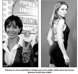 薩賓娜稱,瑪拉以前只是一名無上裝裸體模特,后轉(zhuǎn)行進(jìn)入電視圈成為主持人。2006年,她被貝盧斯科尼相中,并在后者的提攜下從政。令意大利人目瞪口呆的是,2個月前,瑪拉竟被再次當(dāng)選總理的老貝任命為意大利機(jī)會平等事務(wù)部長,成為老貝內(nèi)閣中最年輕的成員。