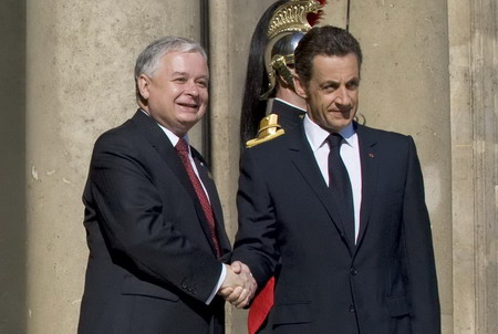 波蘭總統(tǒng)卡欽斯基(左)與法國總統(tǒng)薩科奇(右)