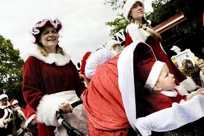 來自全世界將近140個圣誕公公,今天起在哥本哈根的一個游樂園,和粉絲同樂三天。今天的活動高潮是圣誕老人的障礙賽,圣誕老人要比賽駕雪橇爬一座人工冰丘和煙囪。