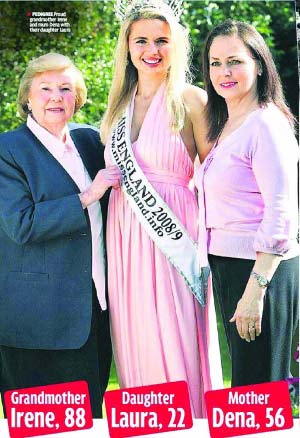 現(xiàn)年22歲的英國女孩勞拉·科爾曼在“英國小姐”選美大賽中擊敗其他49名決賽佳麗,一舉奪得了“英國小姐”的桂冠。然而鮮為人知的是,勞拉其實來自一個英國“選美世家”,她的外婆愛琳、母親迪娜都曾經(jīng)當(dāng)選過英國各個選美大賽中的“選美皇后”!