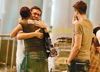 空難乘客的家屬在機(jī)場互擁,情緒難控。
