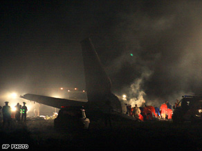 機(jī)場(chǎng)官員稱,飛機(jī)失事時(shí)間大約在當(dāng)晚20時(shí)40分,飛機(jī)起飛剛剛10分鐘。機(jī)身起火燃燒,熊熊烈焰將機(jī)艙全部燒毀,只剩下機(jī)尾。